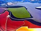 Многоцветните солни езера в залива Сан Франциско Тази многоцветна картина е съставена от множество изкуствено създадени плитки басейна, предназначени за производството на сол. Тя се добива от изпарението на морска вода под въздействието на слънцето. За целта водата от залива постъпва в малките изпарителни басейни, където концентрацията на сол се повишава постепенно, с напредването на изпарителния процес.