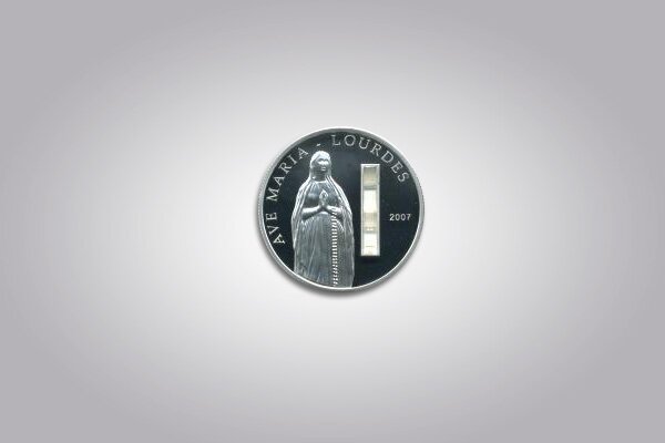 Издигайки идеята „Вярваме в Бог" на ново ниво, островната държава Палау издава сребърна доларова монета през 2007 г. с лика на Дева Мария и малко стъкълце, съдържащо светена вода от пещерата в град Лурдес във Франция. На следващата година страната издава втора серия, с която отбелязва 150-ата годишнина от появяването на Дева Мария в пещерата в Лурдес.